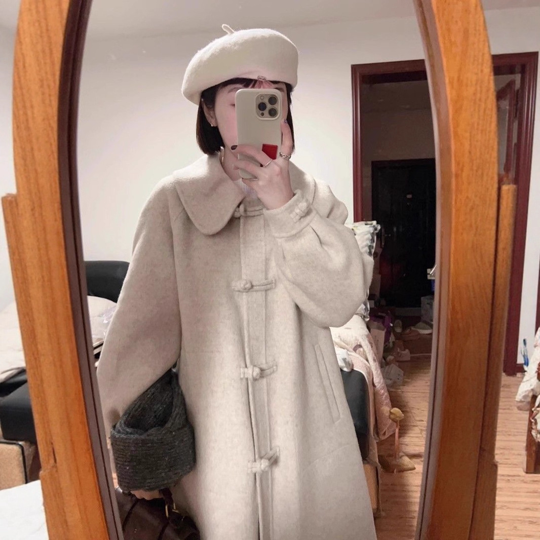 ウールコート女性のための 2025 秋と冬の新しいハイエンド韓国ヘボンスタイルレトロ厚いウールコートトレンディ