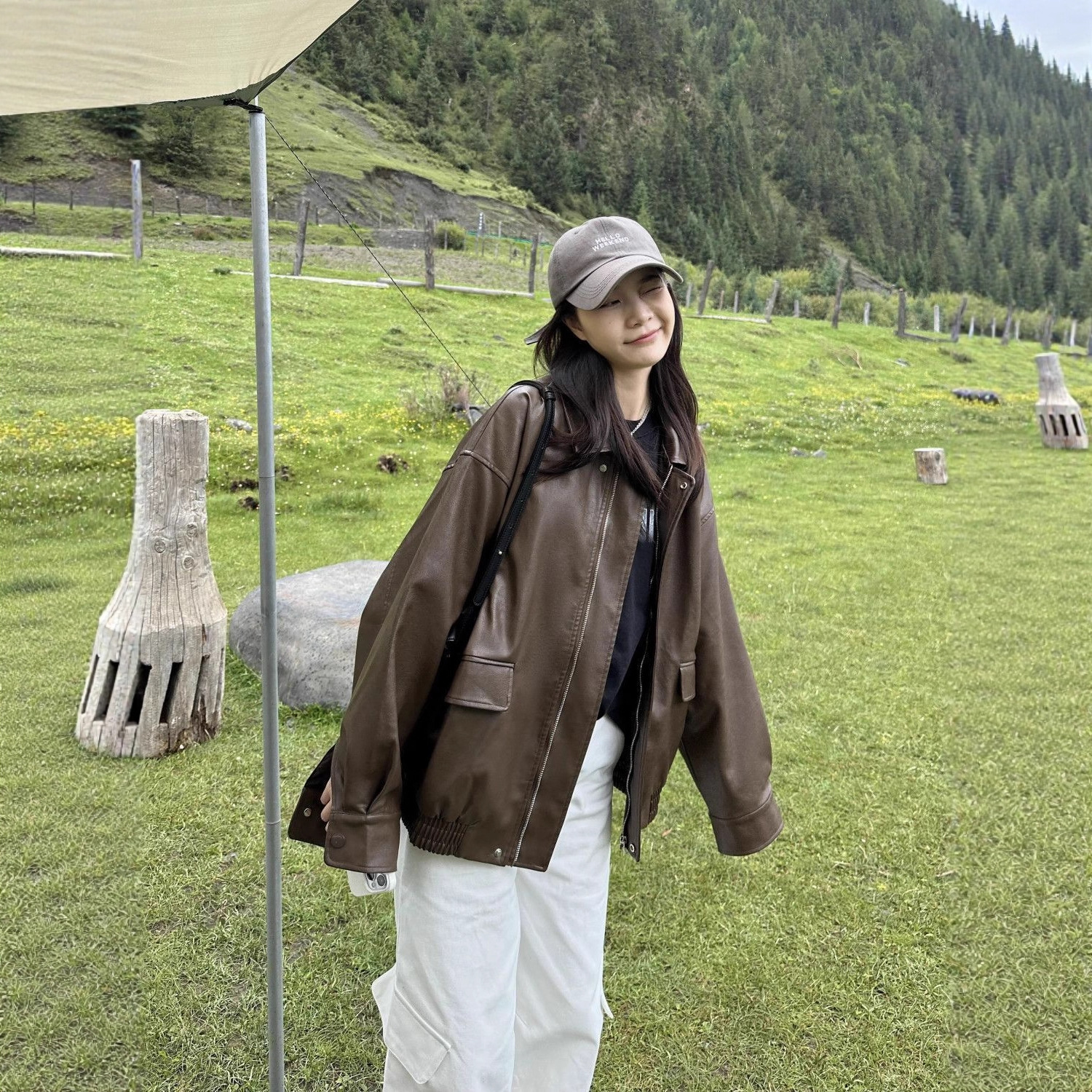 メイラードレザージャケットレディース2025春新作人気レディースブラウンアメリカン香港スタイルレトロハイエンドバイク