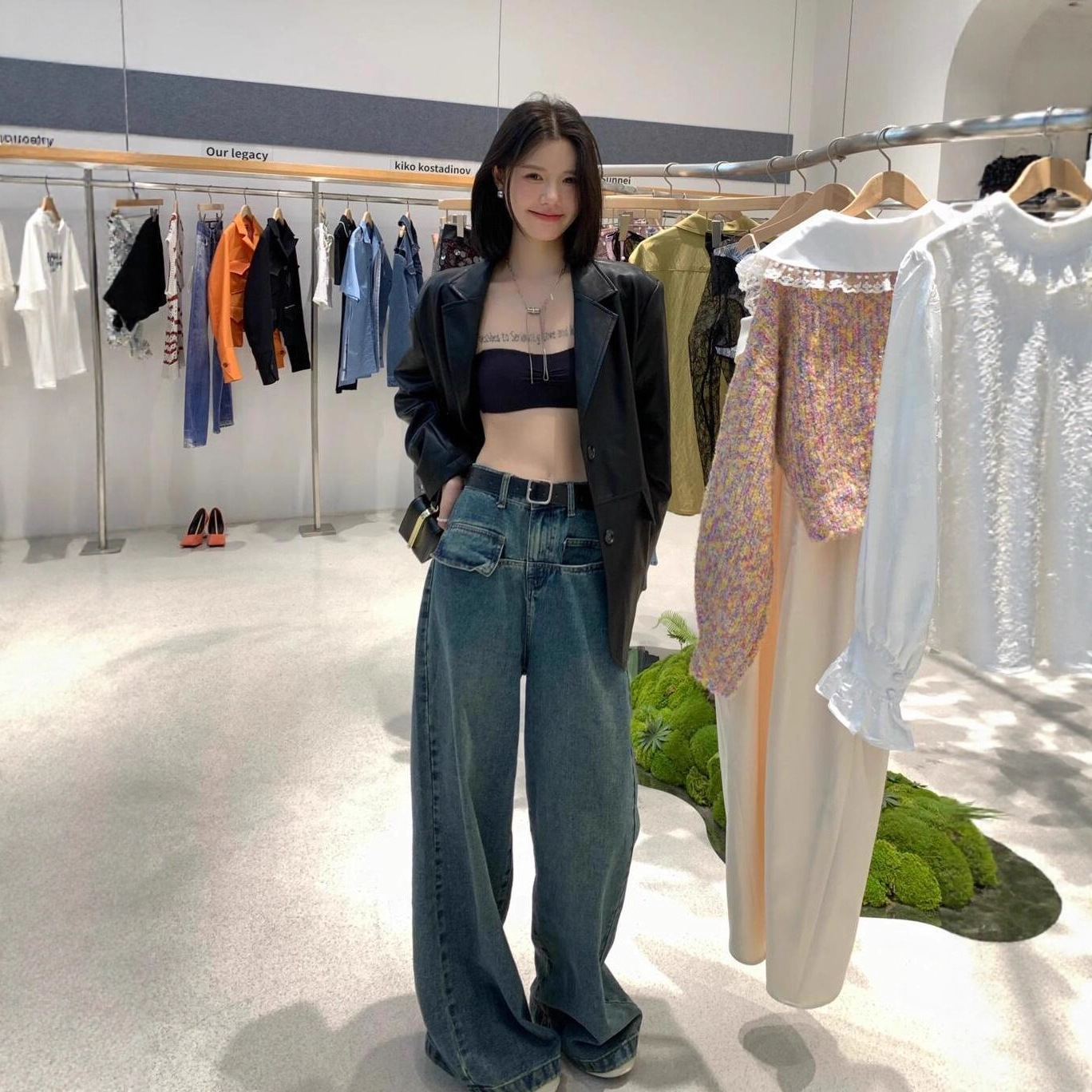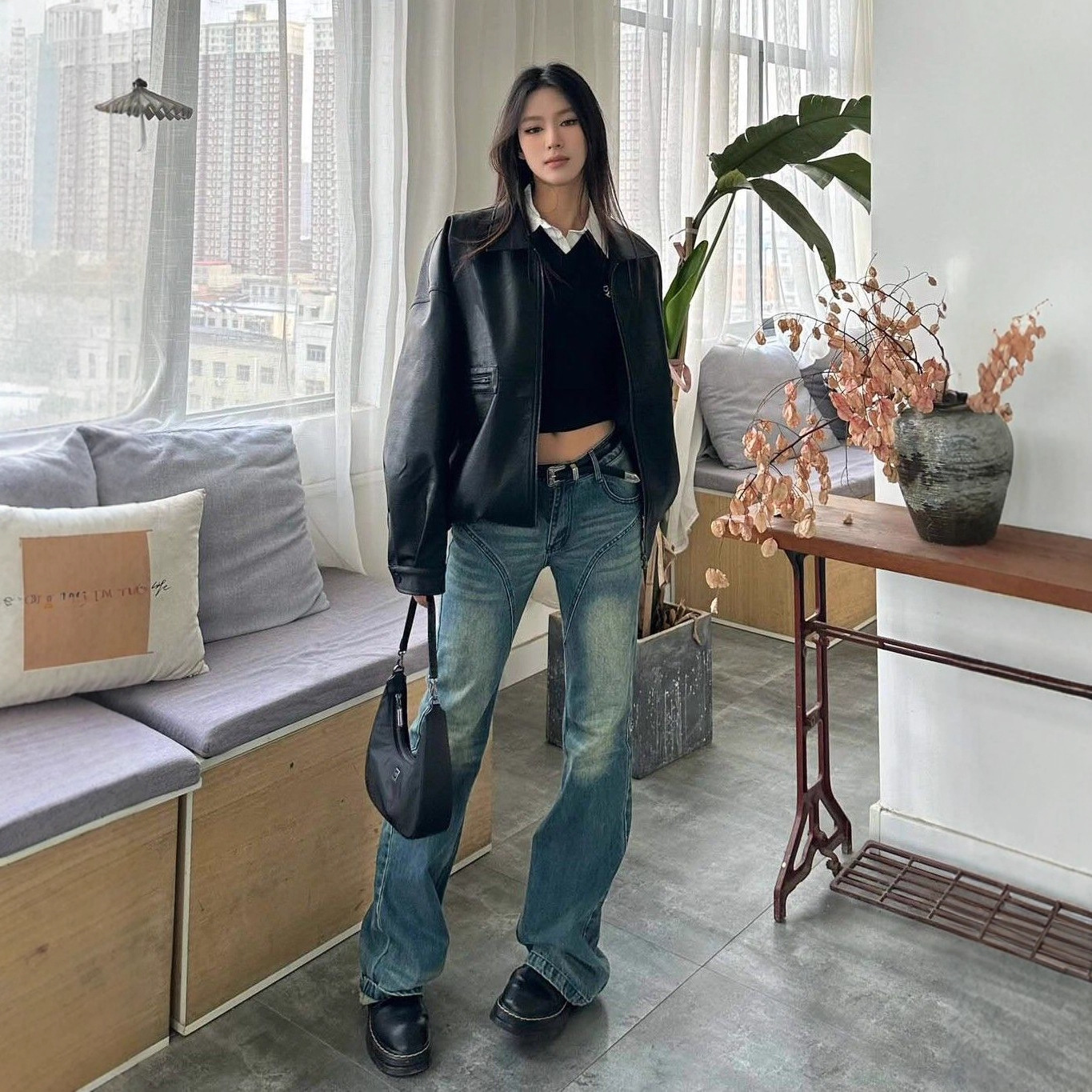 韓国ファッションハイエンド黒スーツレザージャケット女性のための 2025 新しいオートバイスタイル小人痩身スーツ