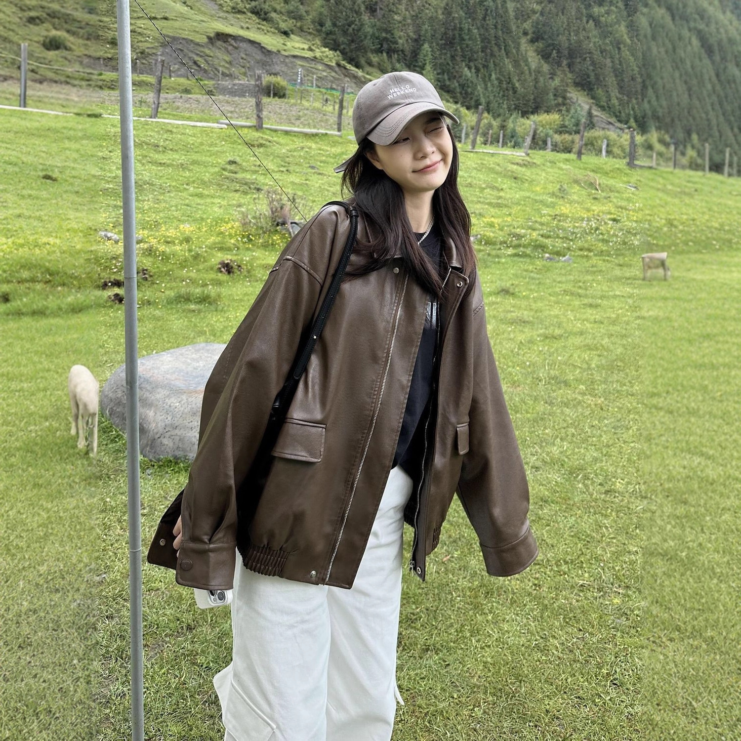 ファッショナブルなレトロなハイエンドブラウン長袖レザージャケット女性のための 2025 秋の新しい多用途オートバイスタイルジャケット