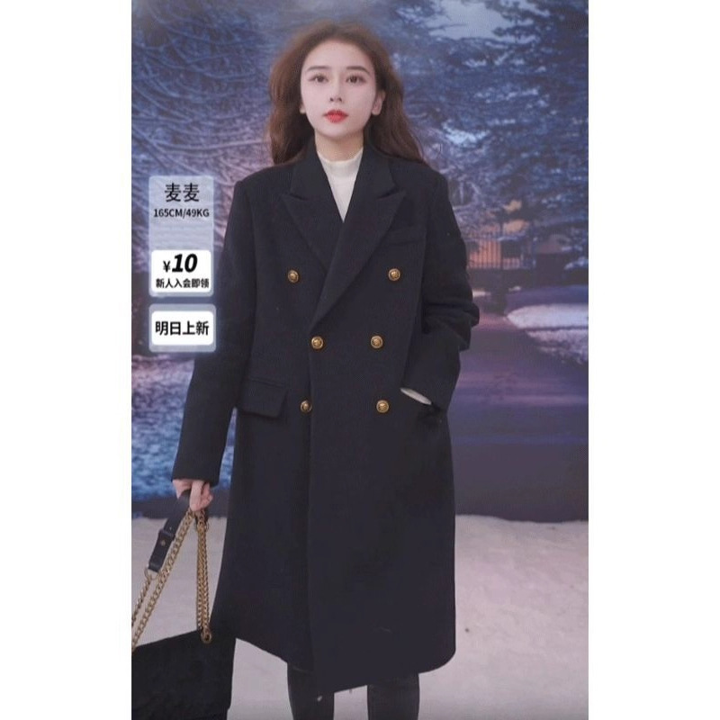 女性のための黒のウールコート 2025 秋と冬の新しいスタイルメイラード韓国スタイルの小柄な気質厚いウールコートトレンディ