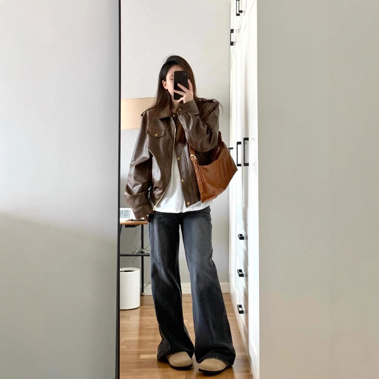 レトロ韓国スタイルブラウンジッパーレザージャケット女性のための 2025 新しいメイラードファッションオートバイスタイルスリム PU ジャケット
