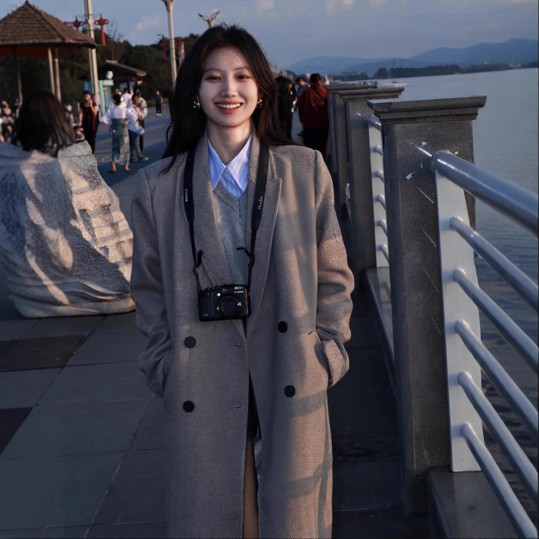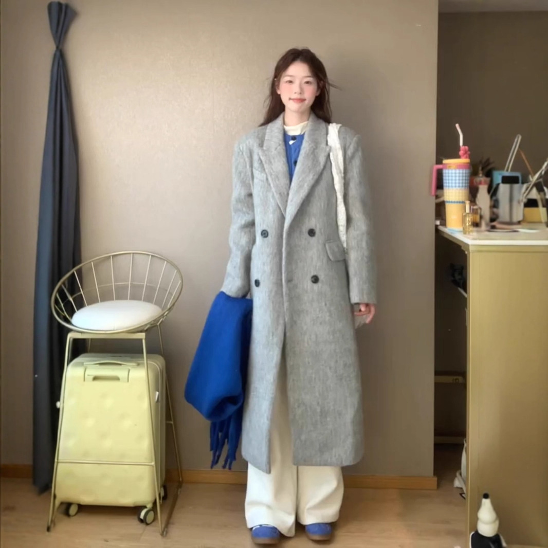 ウールコート女性のための 2025 秋と冬の新しいハイエンド韓国スタイルの小さなヘボンスタイルの厚いウールコート