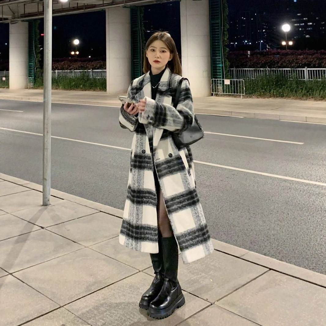 チェック柄ウールコート女性のための 2025 秋と冬の新しいヘップバーンスタイルのハイエンド韓国スタイルのルーズ気質厚いウールコート