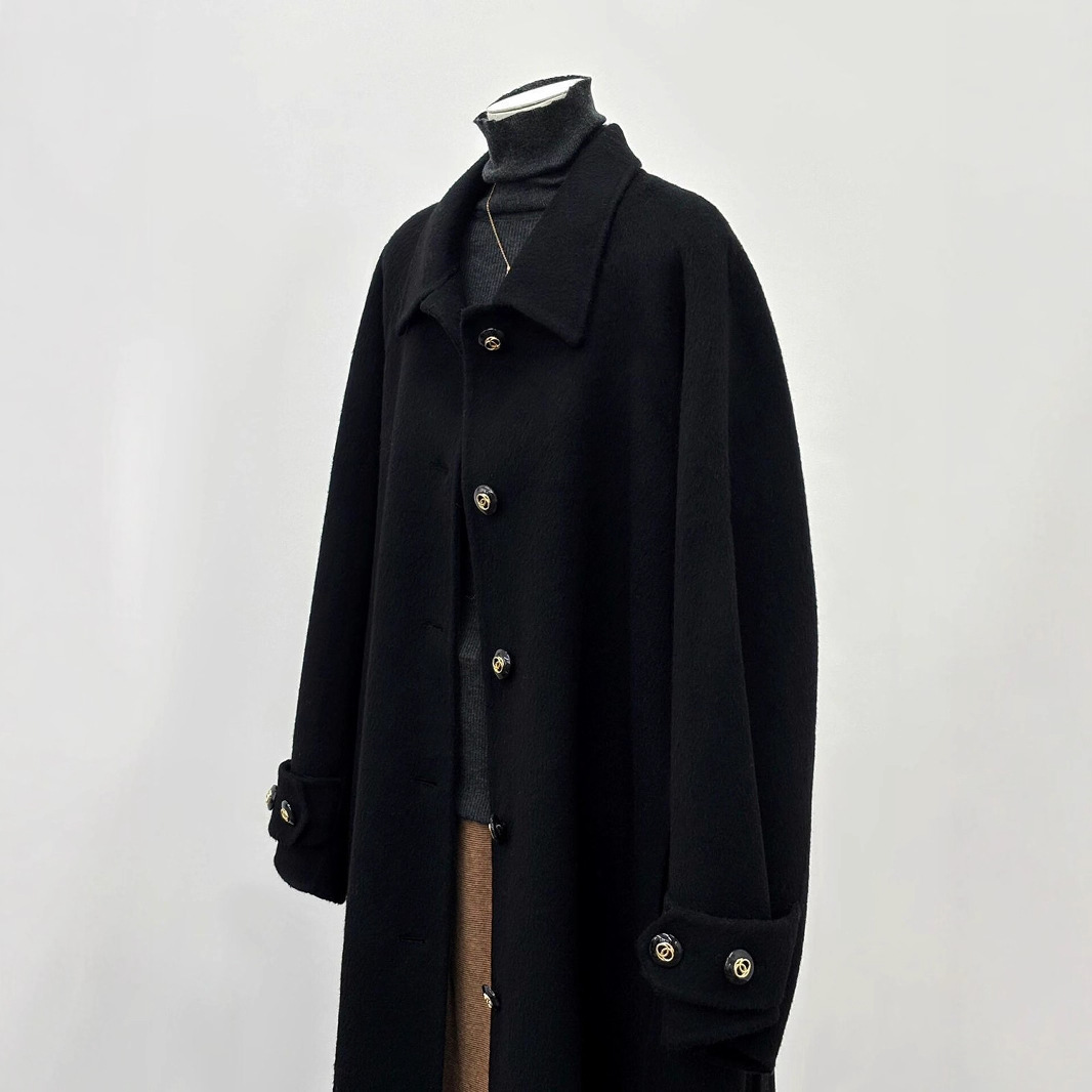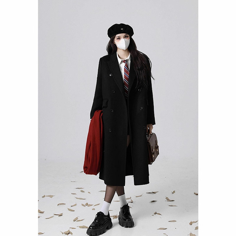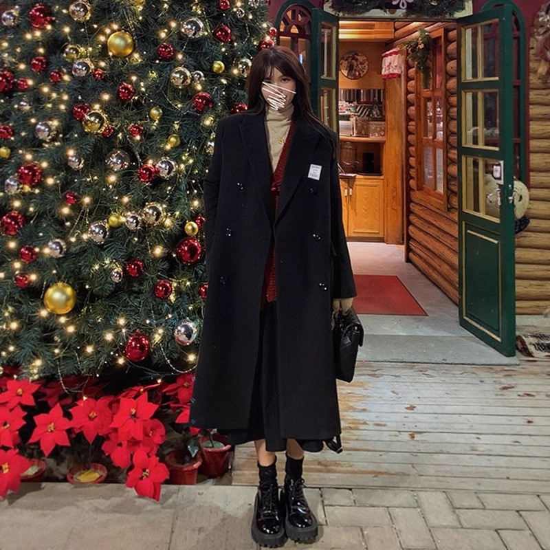 黒のウールコート女性の秋冬ウールコート2025新しい韓国スタイルルーズヘップバーンスタイル小柄なロングトレンディ