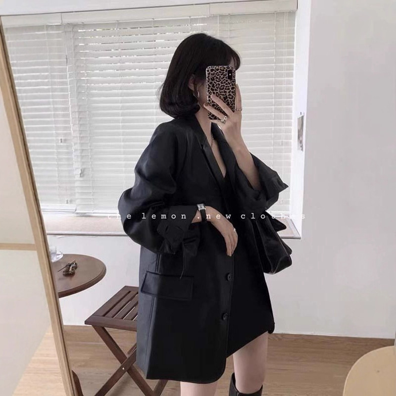 アメリカントレンディな黒革スーツジャケット女性のための 2025 新しいスタイルの小柄なハイエンド韓国スタイル PU スーツジャケット