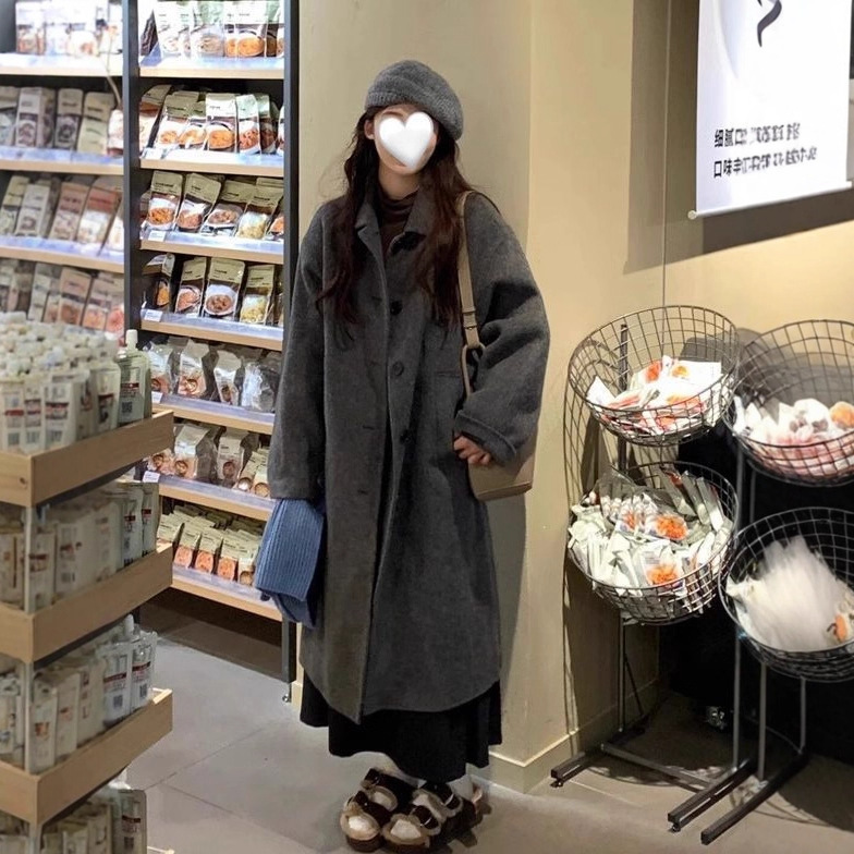 黒の韓国のシンプルなロングウールコート女性のための 2025 秋と冬のスタイルの小さなファッショナブルな厚いウールコートトレンディな
