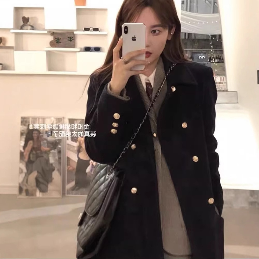 女性のための黒のウールコート 2025 秋と冬の新しいヘップバーンスタイル韓国スタイルの小さなハイエンドの人気のウールコート
