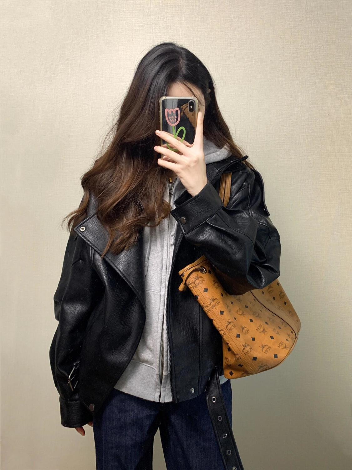アメリカンレトロオートバイレザージャケット女性用2025初春新作小柄メイラード香港スタイル万能ジャケットトレンド