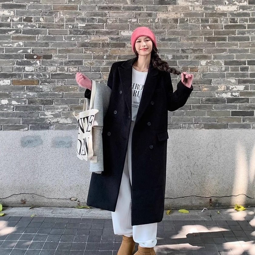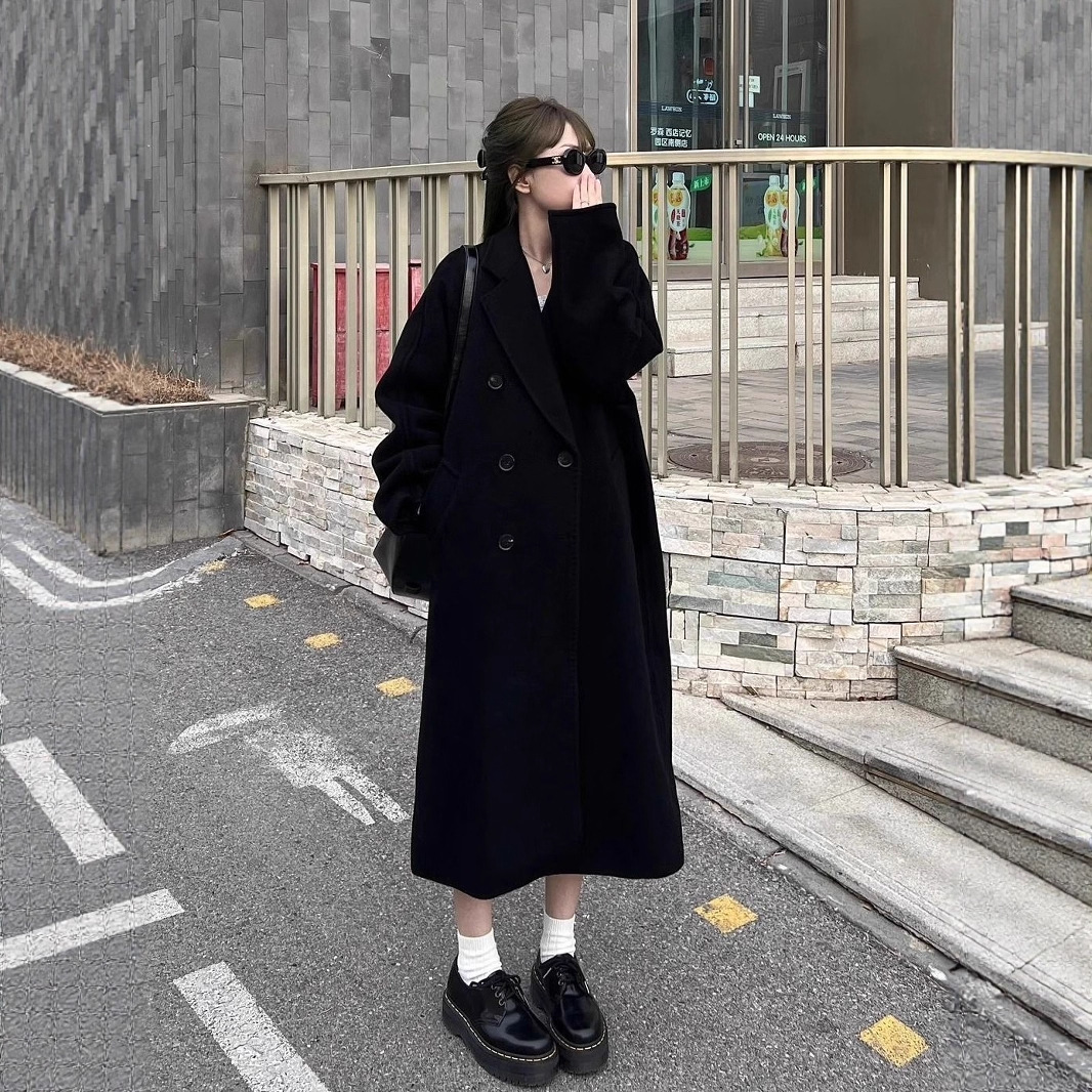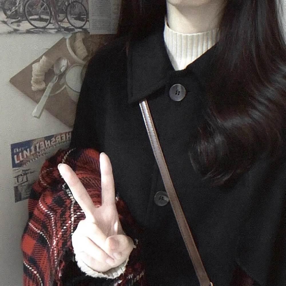 女性用黒ウールコート2025秋冬新作ウールコート韓国風人気小柄高級ヘップバーンスタイル