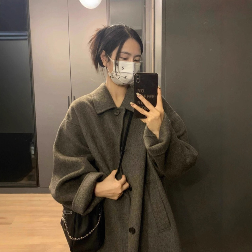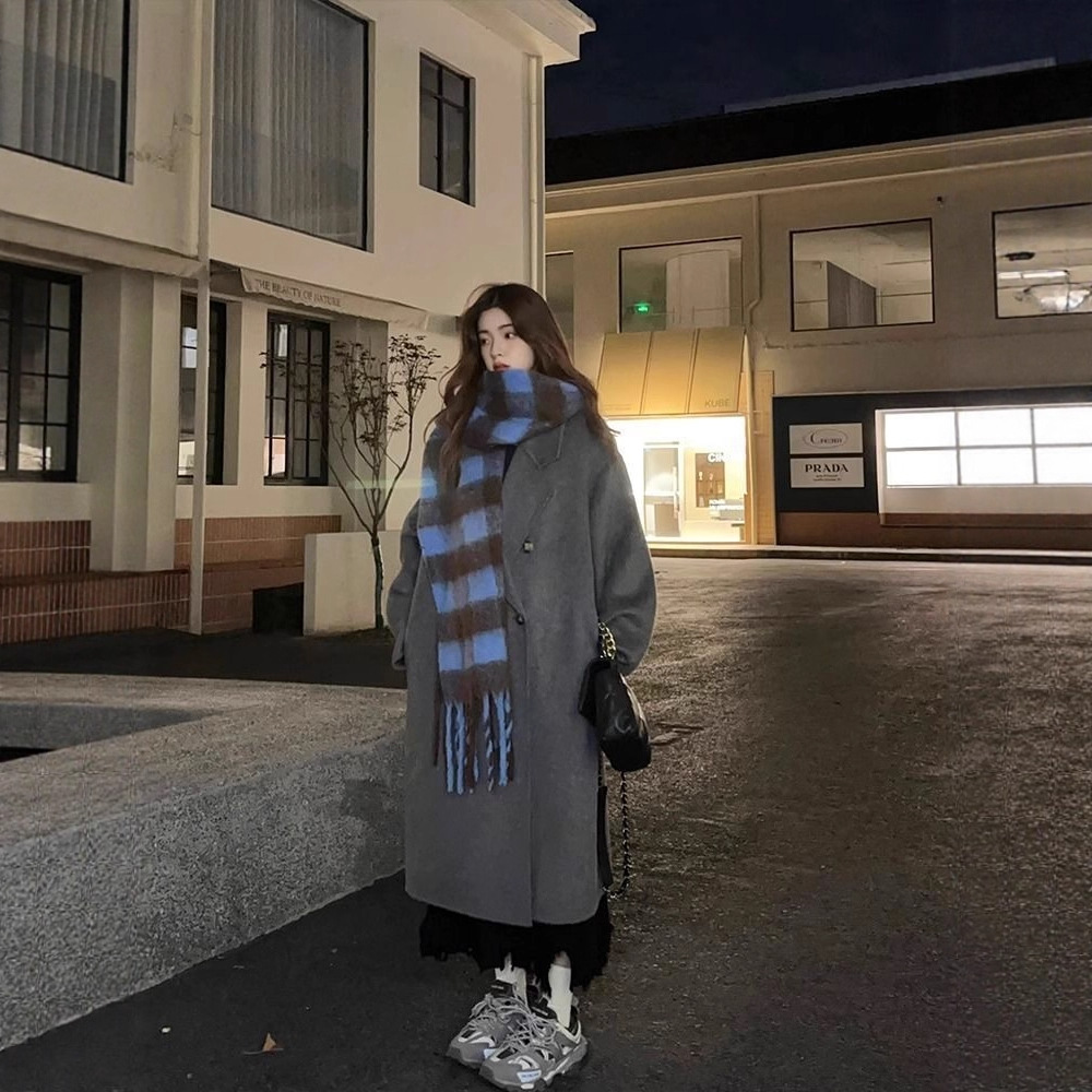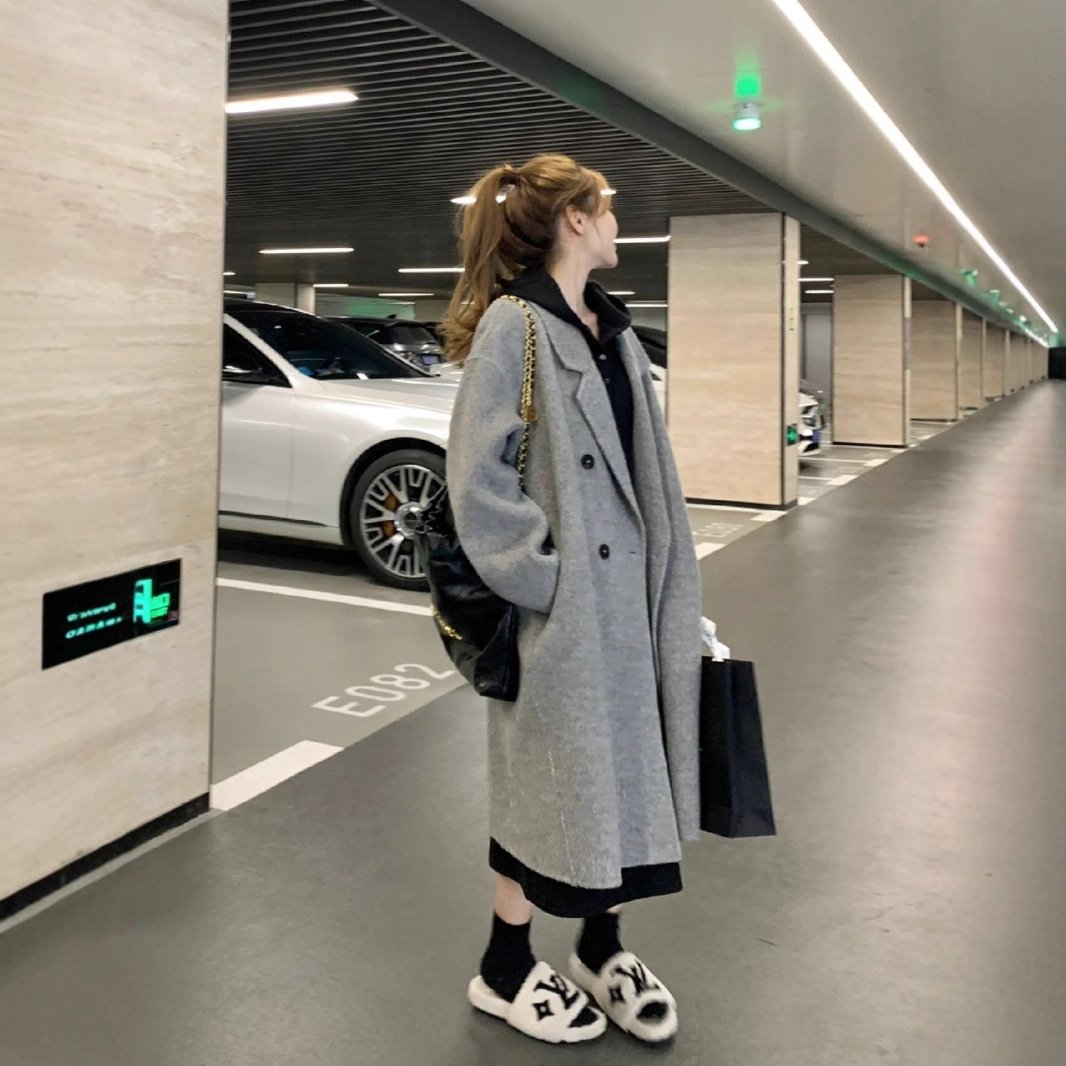 グレーウールコート女性のための 2025 秋と冬の新しいメイラード韓国ヘップバーンスタイル厚いウールコートトレンディ