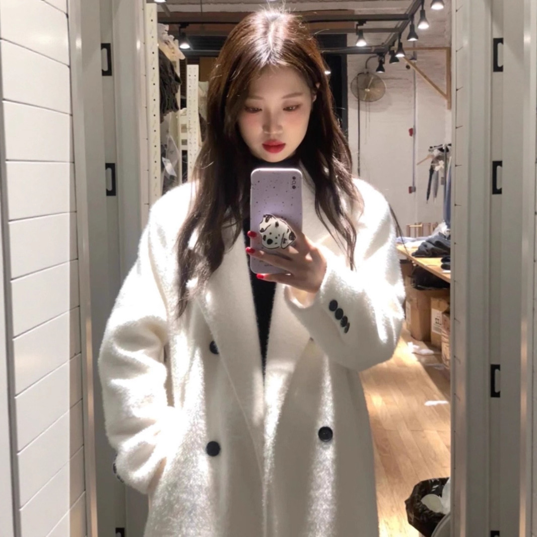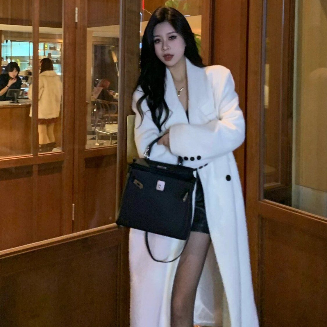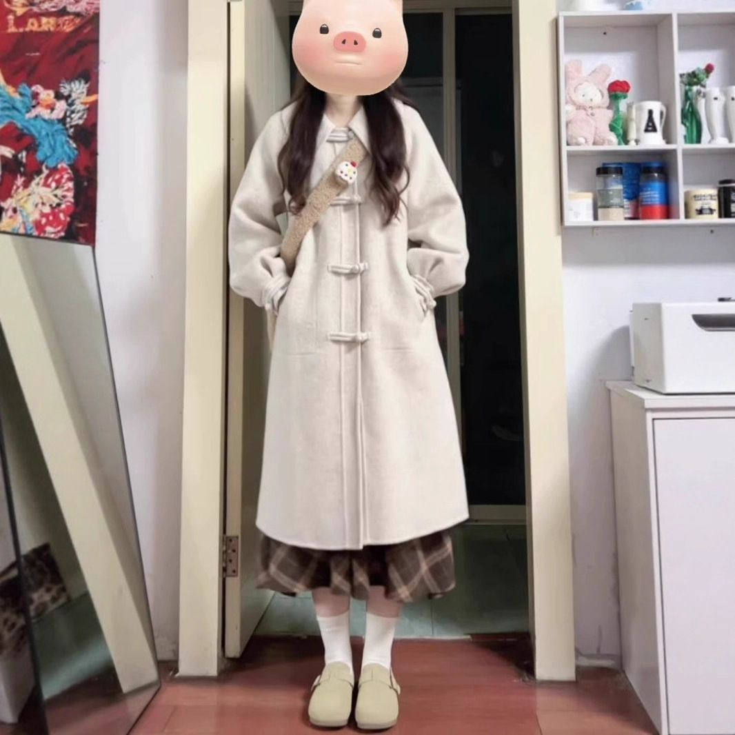 女性のための白いウールのコート 2025 秋と冬の新しいメイラード韓国ヘップバーンスタイルの厚いウールのコート