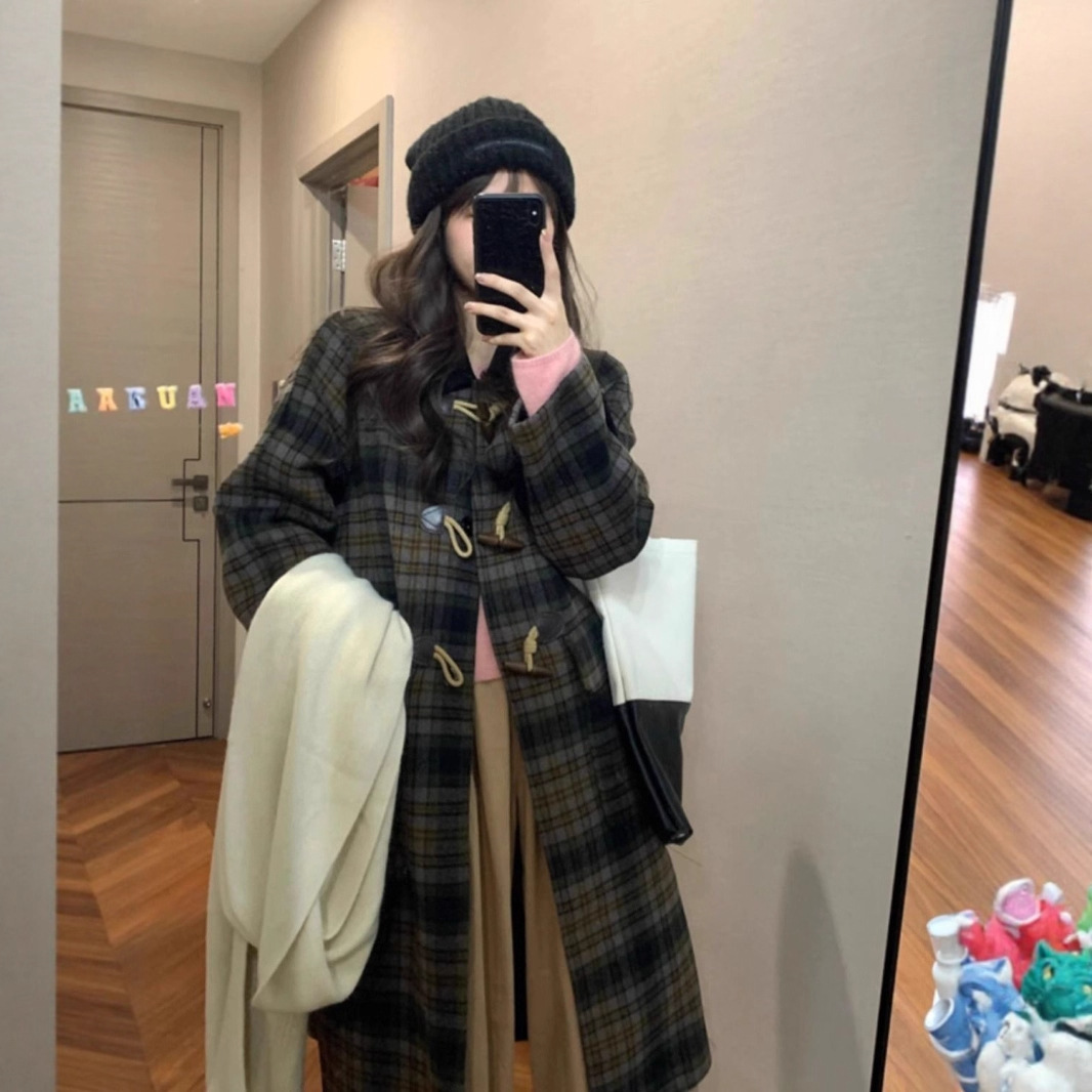 秋冬の女性用タータンチェックコート、韓国風、小柄、高級、優しいスタイル、トレンドのウールコート