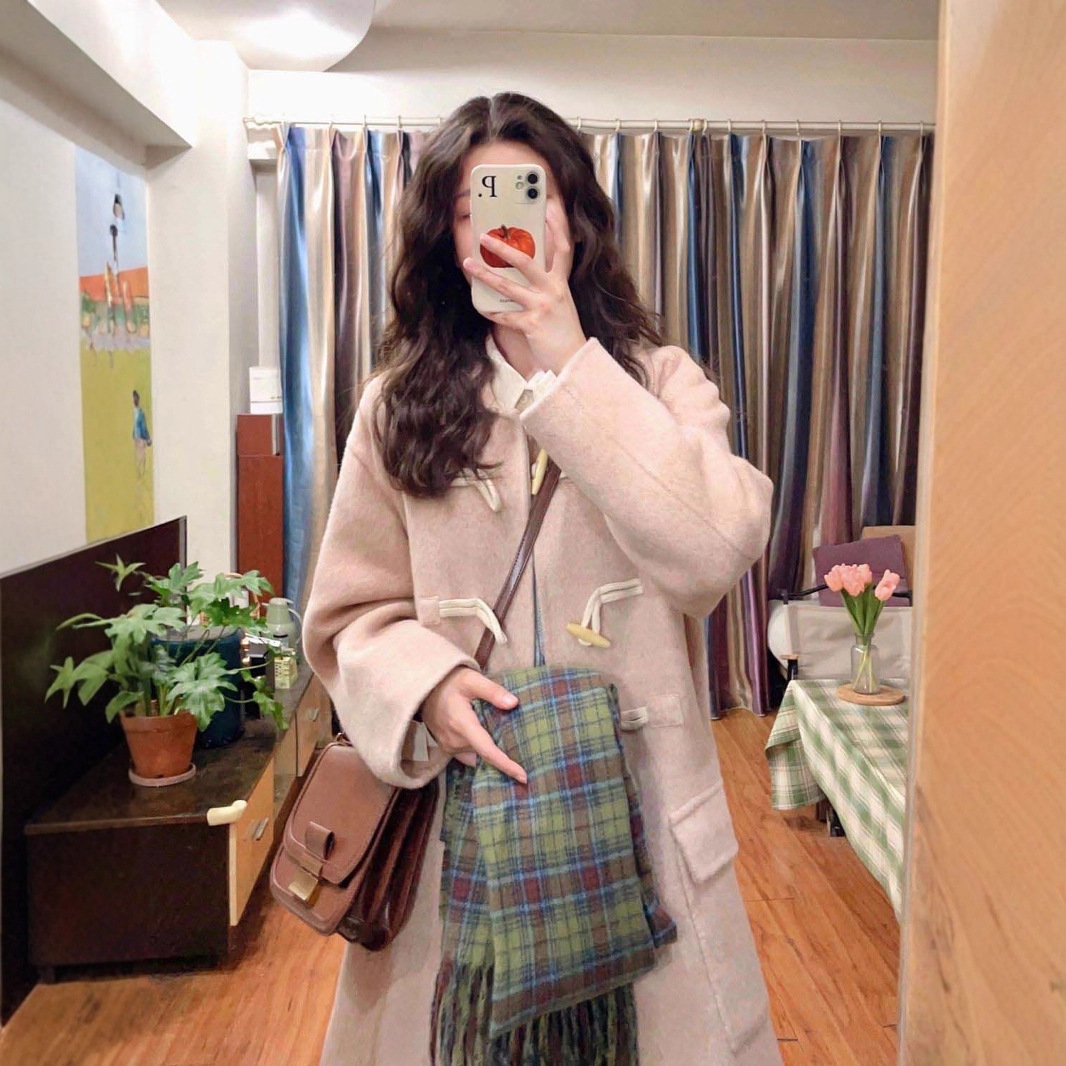 ホーンボタンウールコート女性のための 2025 秋と冬の新しいメイラード韓国ヘップバーンスタイル厚いウールコート