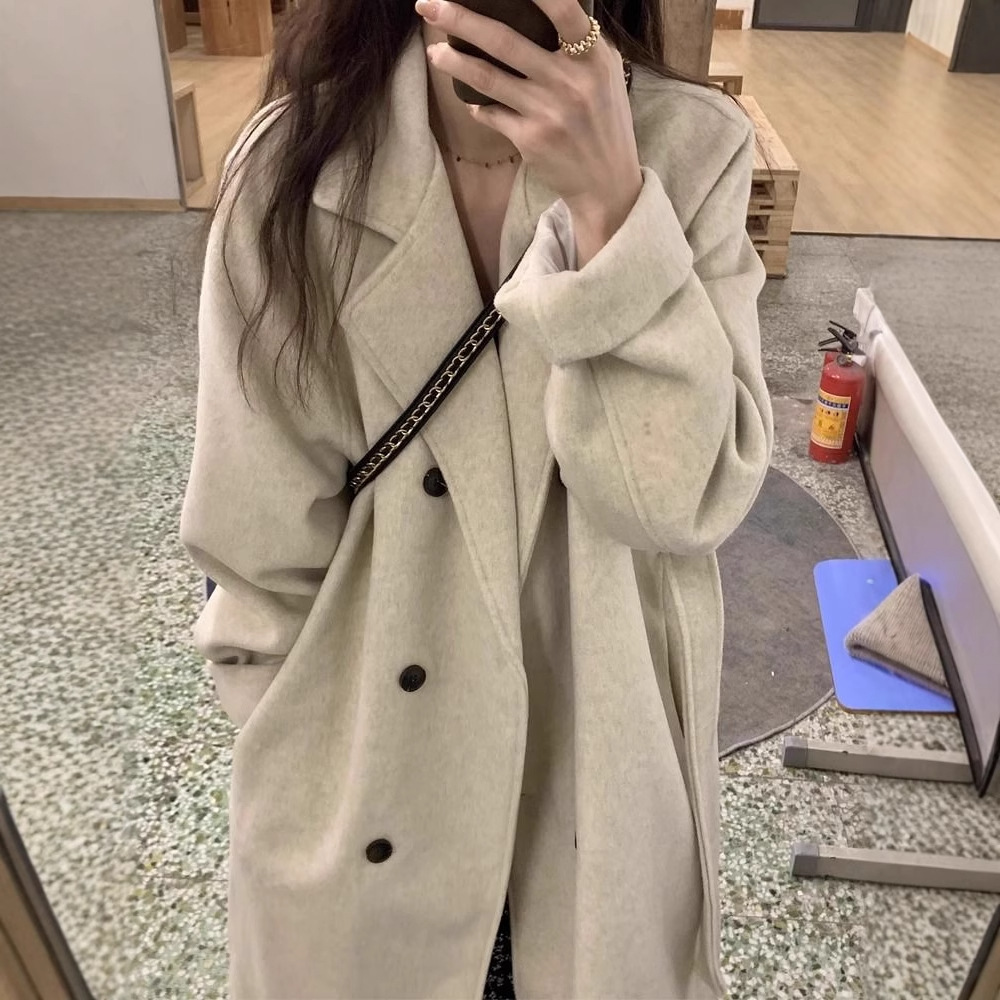 ウールコート女性のための 2025 秋と冬の新しいメイラード韓国ヘップバーンスタイルルーズ厚みのあるウールコートトレンディ