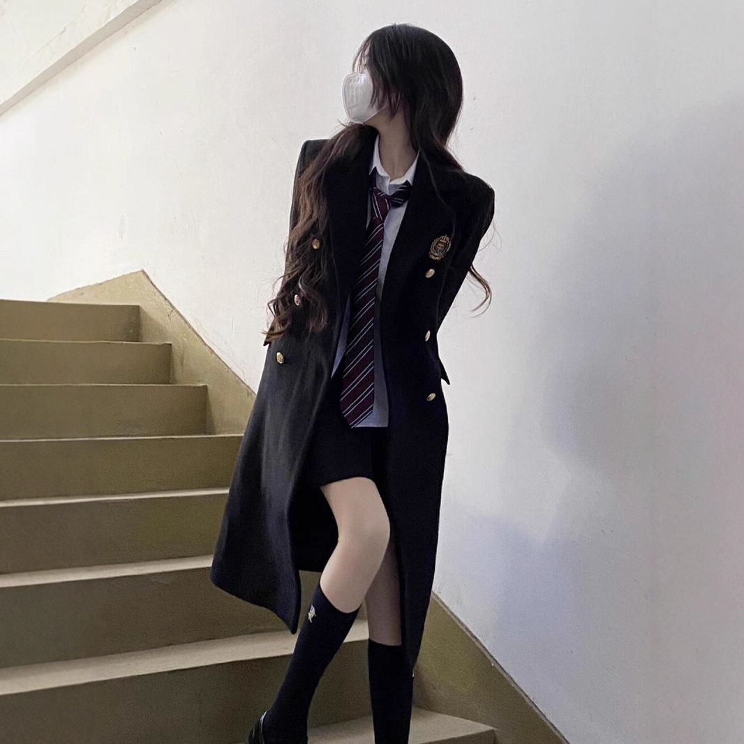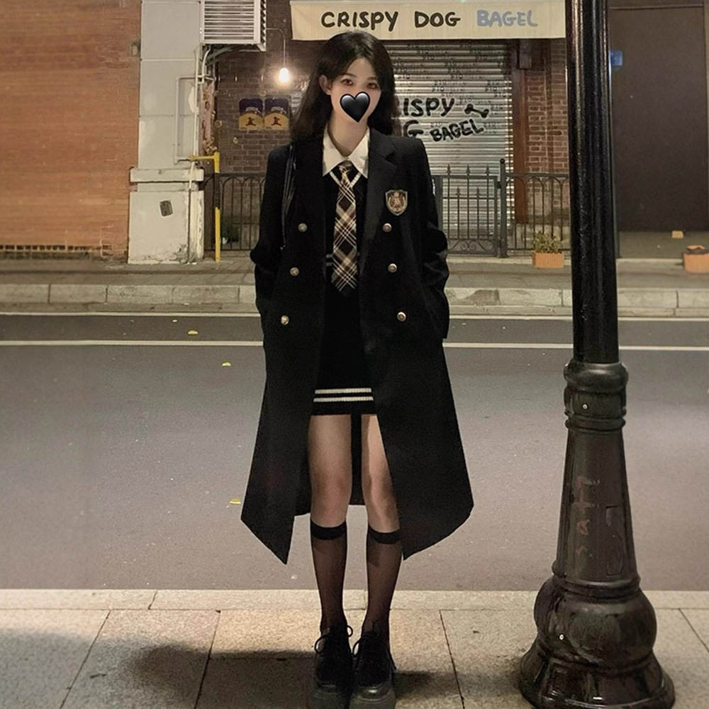 黒のスーツウールコート女性のための 2025 秋と冬の新しいメイラード韓国ヘップバーンスタイル厚いウールコートトレンディ