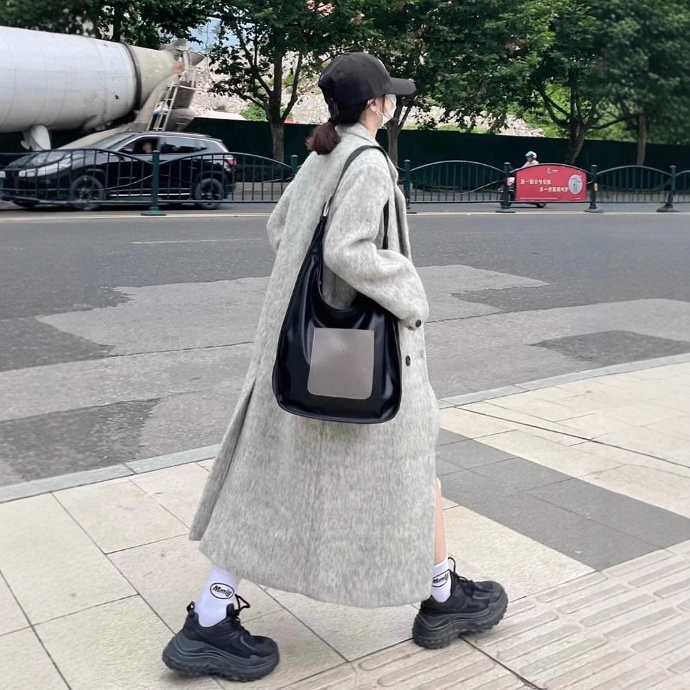 女性のためのハイエンドグレーカジュアルウールコート2025秋冬韓国スタイル人気の厚みのあるフォレストウールコートトレンディ