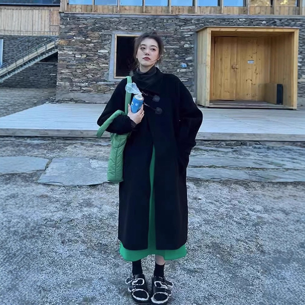 秋冬の女性用気質ホーンボタンウールコート厚みのある2025新しいヘップバーンスタイルウールコート小柄な人向け