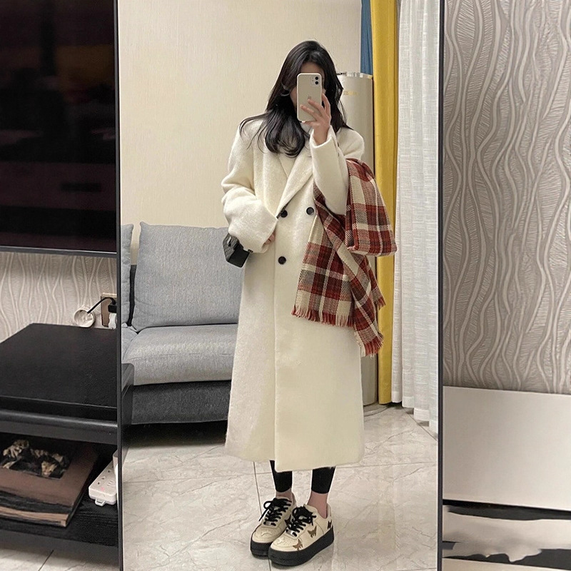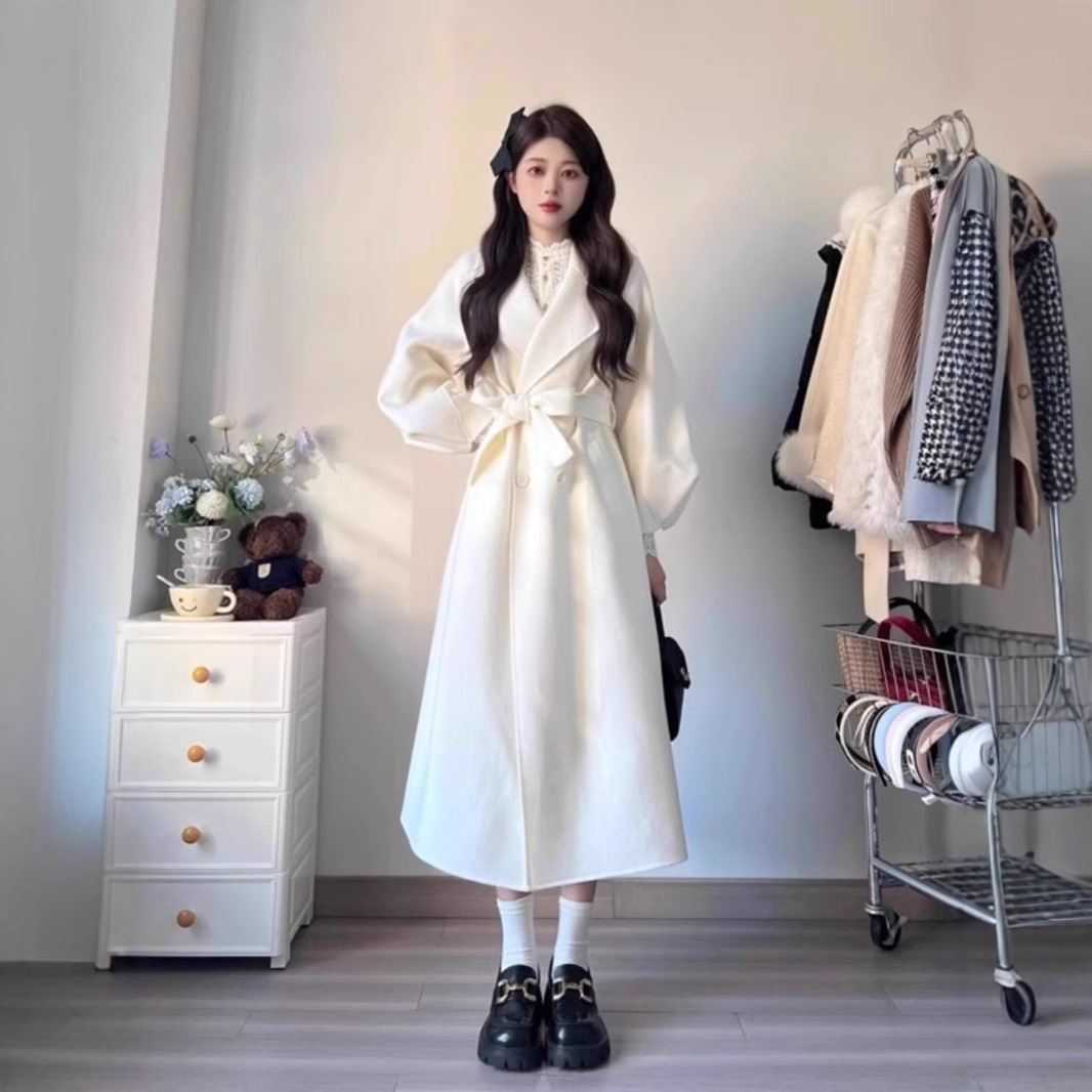 女性のための白いウールコート 2025 秋と冬の新しいヘップバーンスタイル韓国スタイルの人気の気質厚みのある森スタイルのウールコート