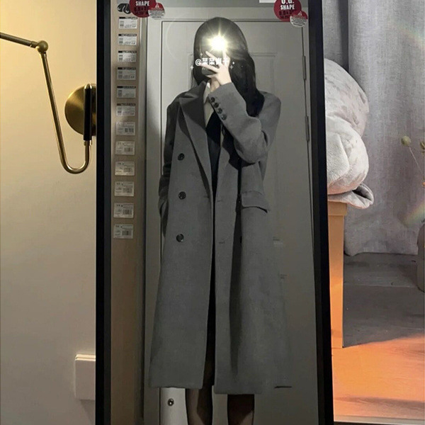 グレーウールコート女性のための 2025 秋と冬の新しいメイラード韓国ヘップバーンスタイル厚いウールコートトレンディ