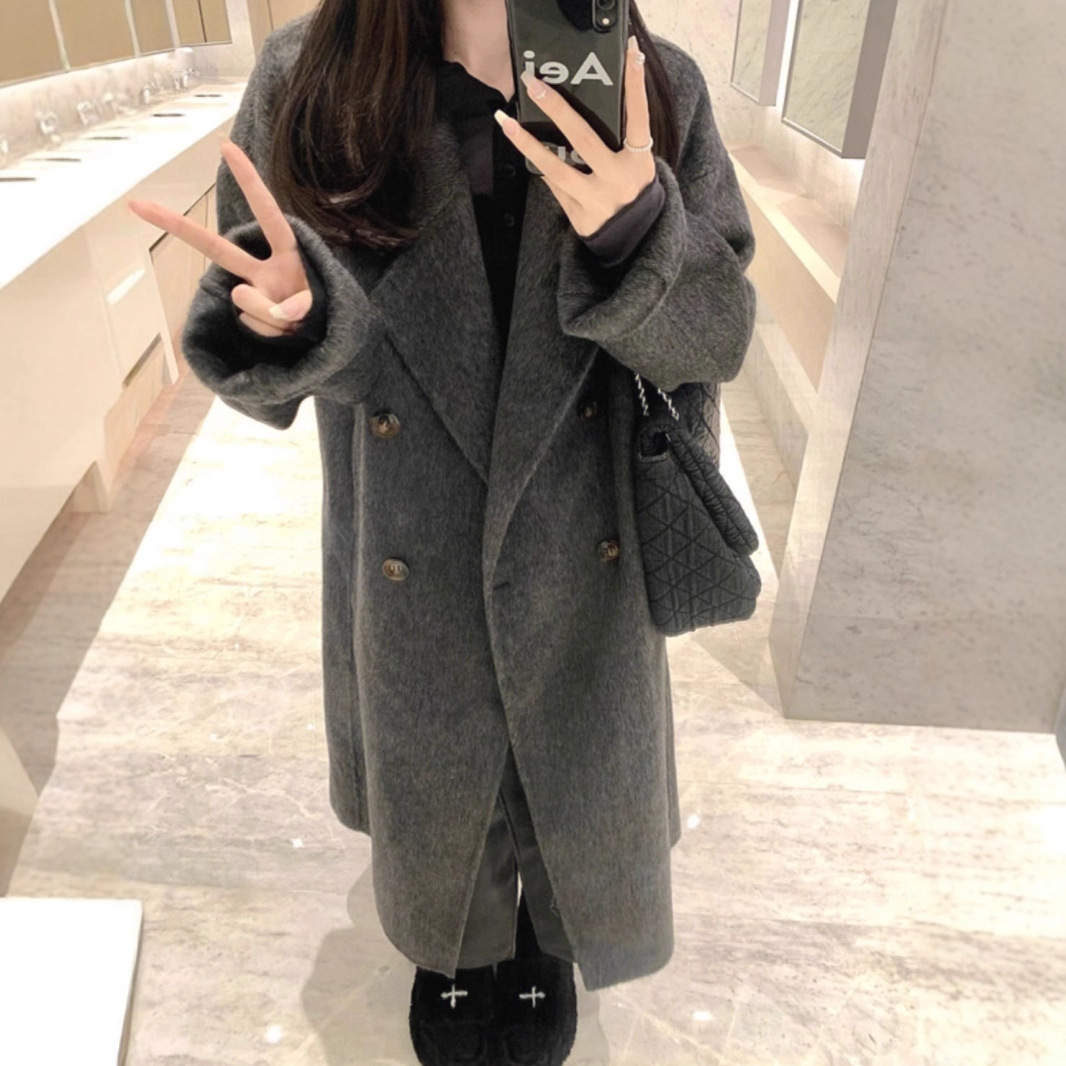 グレーウールコート女性のための 2025 秋と冬の新しいメイラード韓国ヘップバーンスタイルのハイエンド厚いウールコート