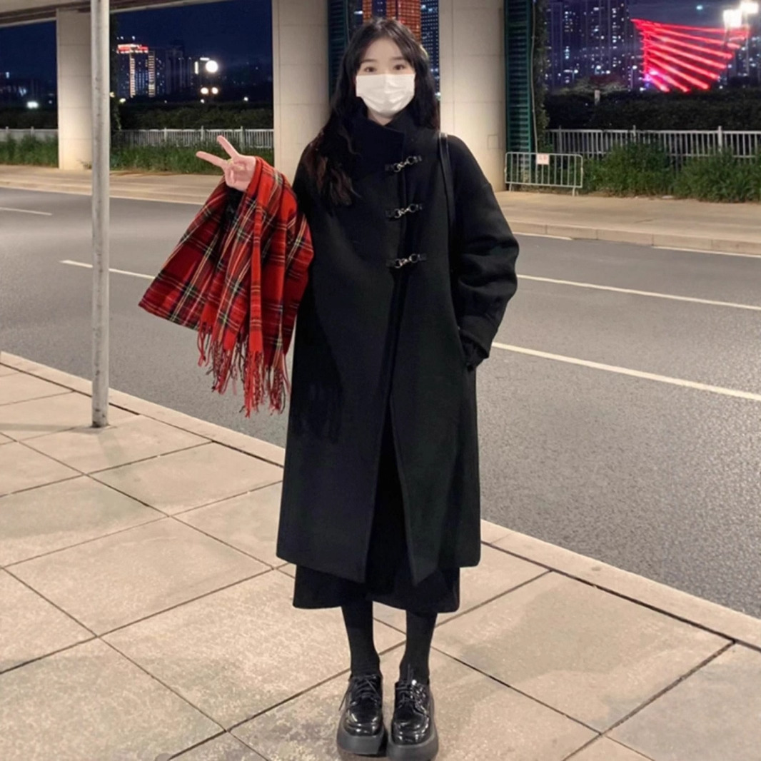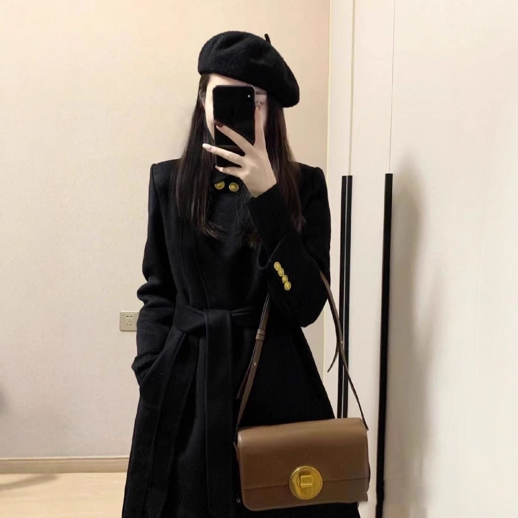 黒のウールコート女性のための 2025 秋と冬の新しいメイラード韓国ヘップバーンスタイル厚いウールコートトレンディ