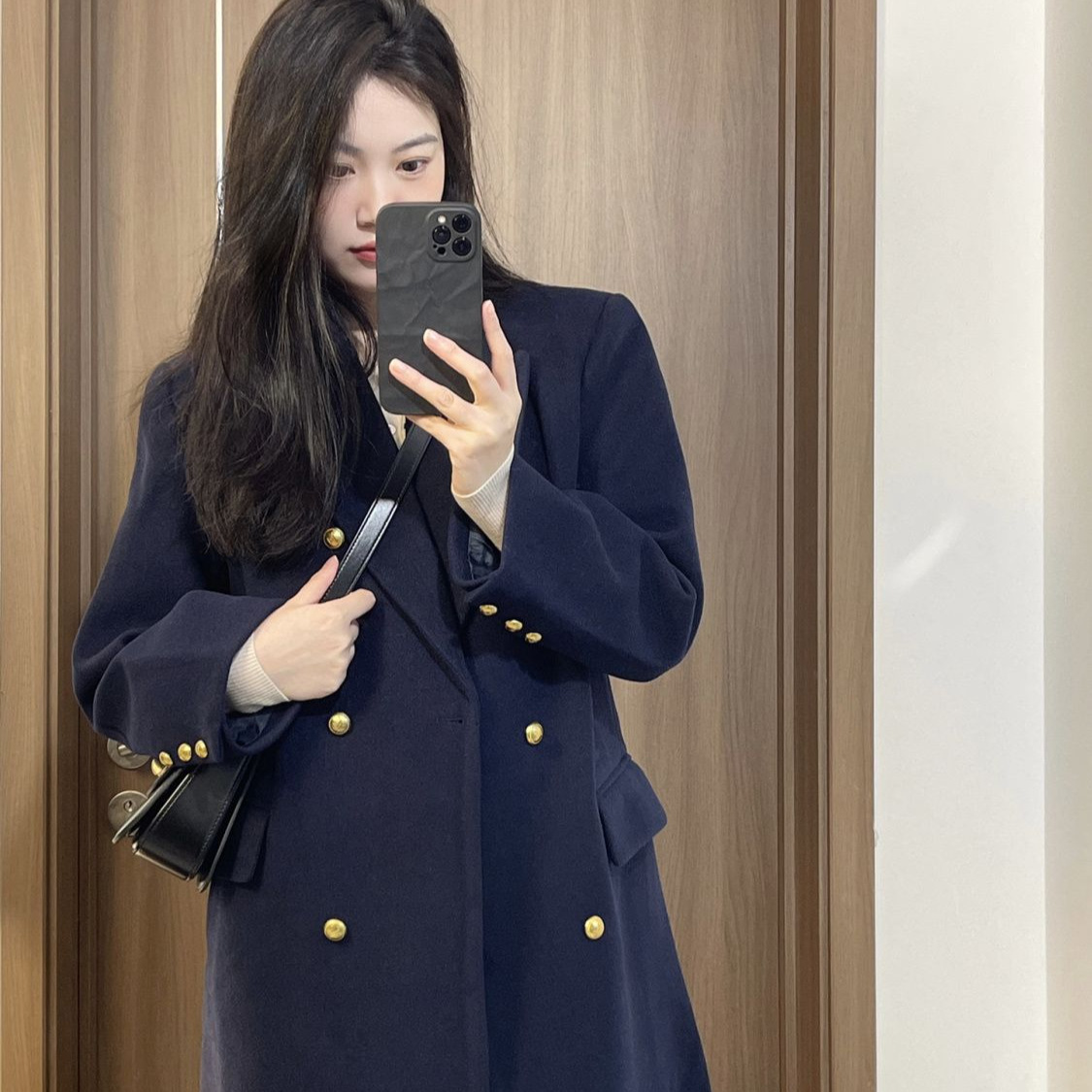 ウールコート女性のための 2025 秋と冬の新しいハイエンド韓国スタイルの小さなヘボンスタイルの厚いウールコート