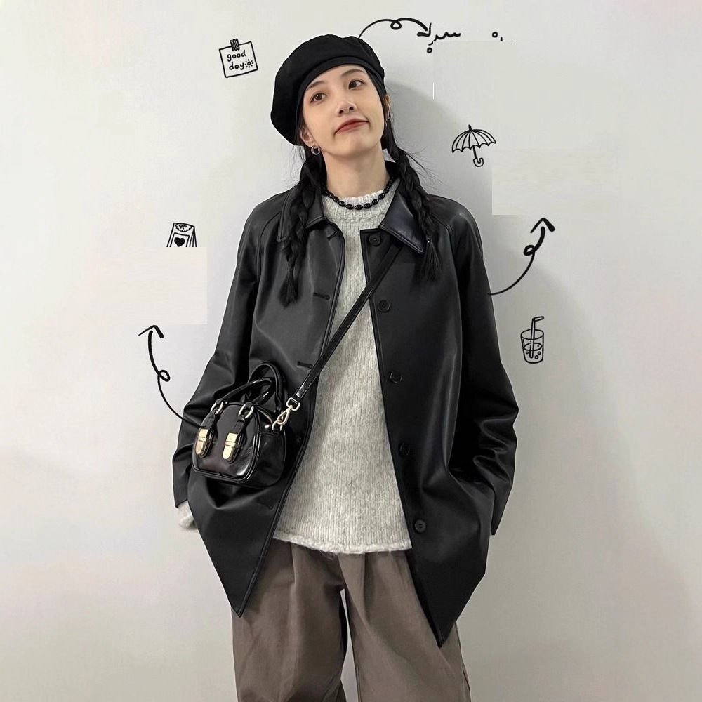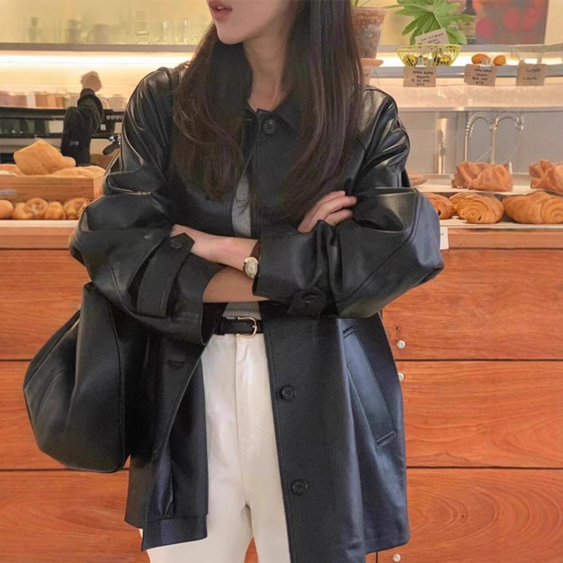 レトロファッションハイエンドブラックレザージャケット女性のための 2025 秋の新多用途ルーズファッション PU ジャケットトレンド