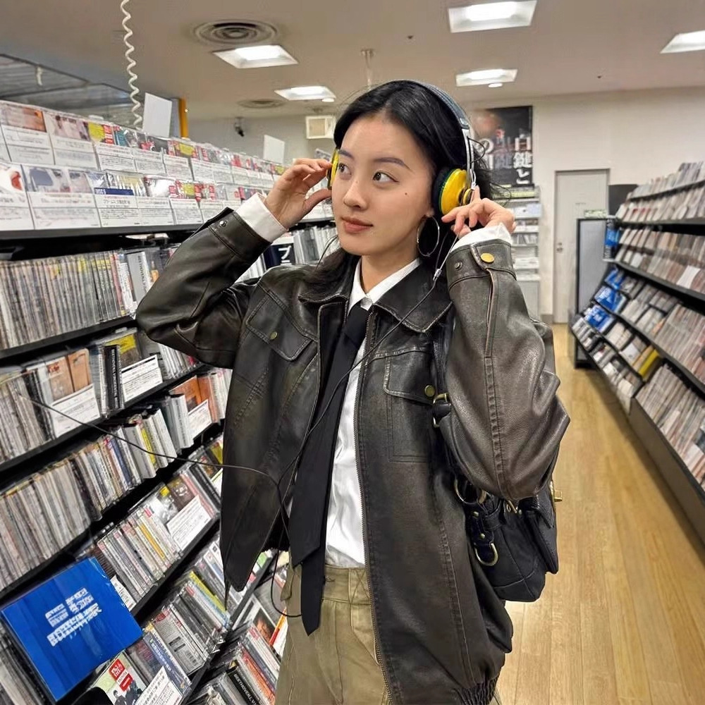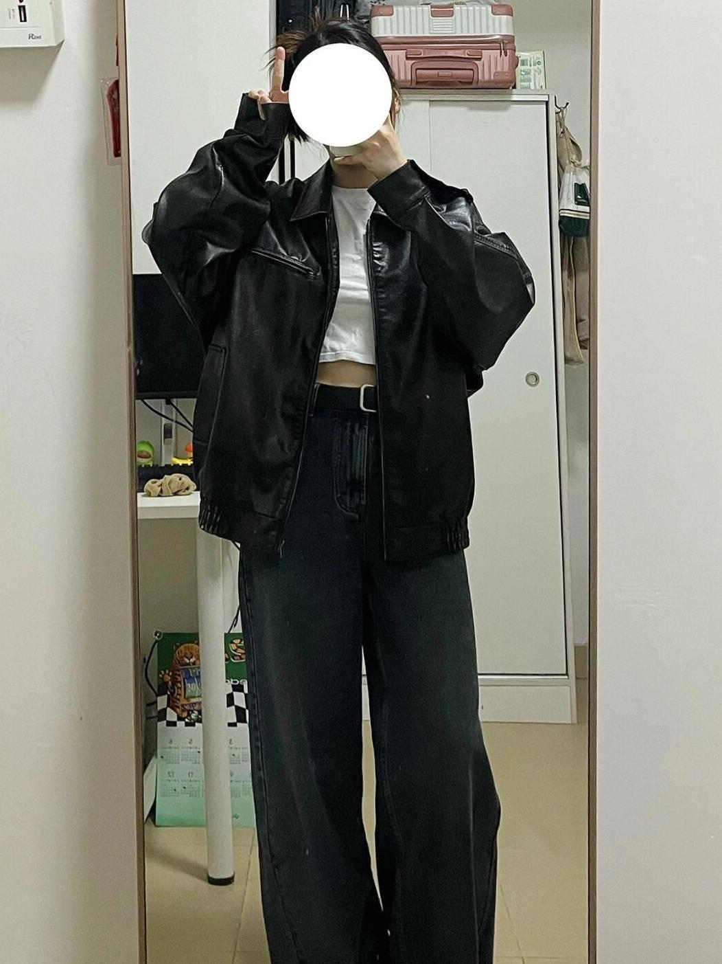 アメリカンブラックレザージャケット女性用2025春新作ゆったりスリム小柄ハイエンドバイクジャケットトレンディ