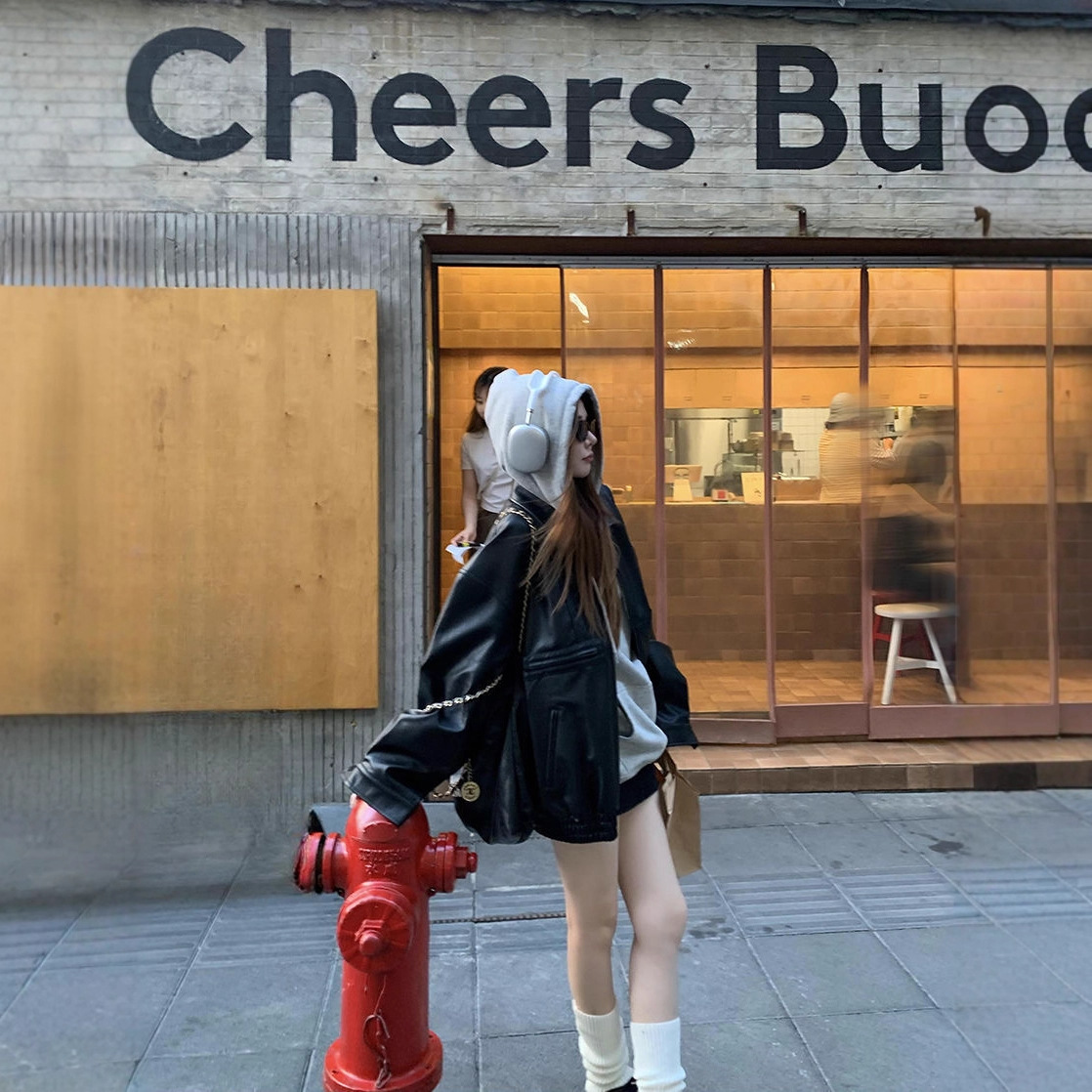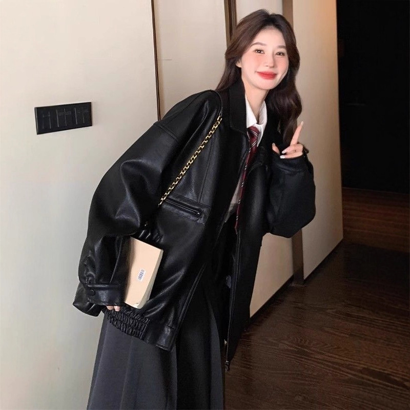 黒のレザージャケット女性のための 2025 新作春と秋のショート韓国スタイルルーズレトロ香港スタイルオートバイ pu ジャケットトレンディ