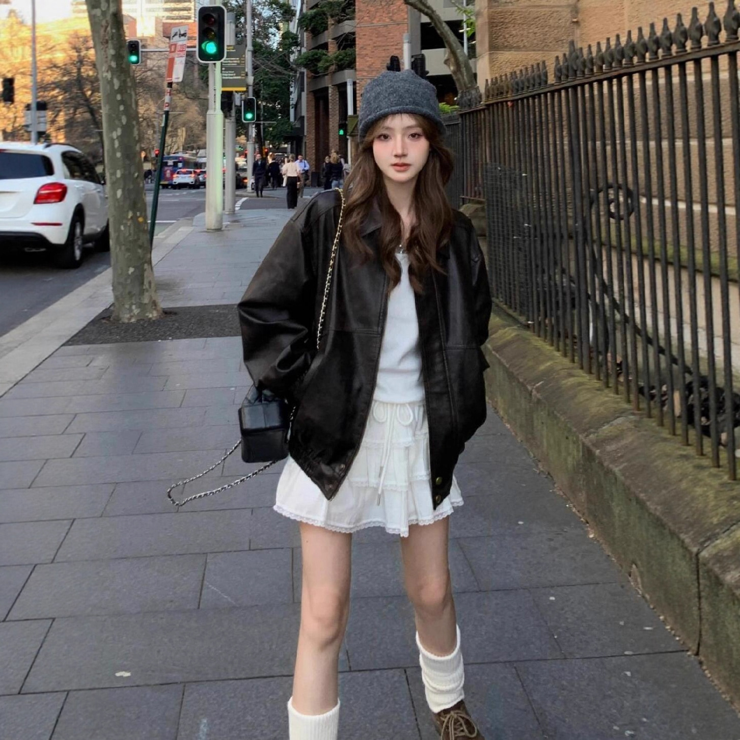 レトロ韓国オートバイレザージャケット女性のための 2025 新しい韓国スタイルのファッション小人ハイエンドスリム PU ジャケット