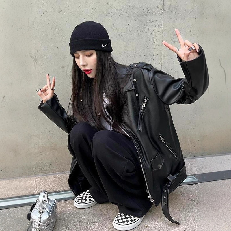 ファッショナブルなレトロ韓国黒 PU ジャケット女性のための 2025 秋の新しいオートバイスタイルのハイエンドスリムレザージャケット