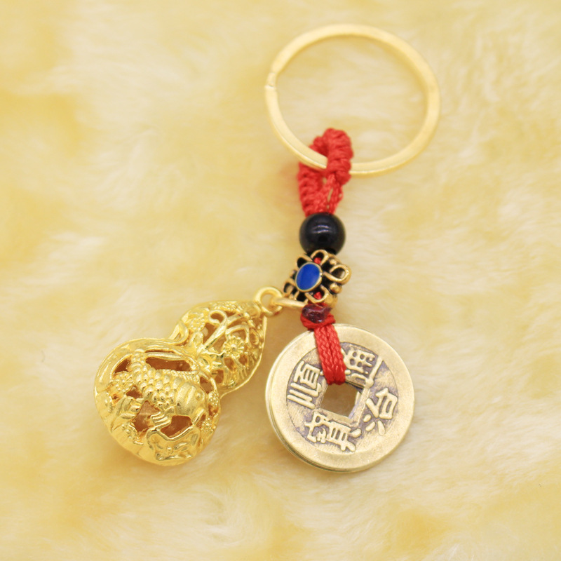 透かし彫りのヒョウタンのキーホルダーのアクセサリーの真銅の黄銅の五帝のお金の合金の透かし彫りのヒョウタンのペンダントはネットの赤い色を生放送します。