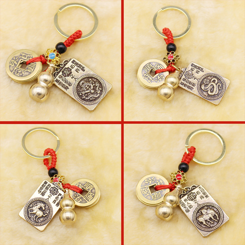 十二生肖真銅五帝銭キーホルダー真鍮開口ひょうたん八大守護神アクセサリー