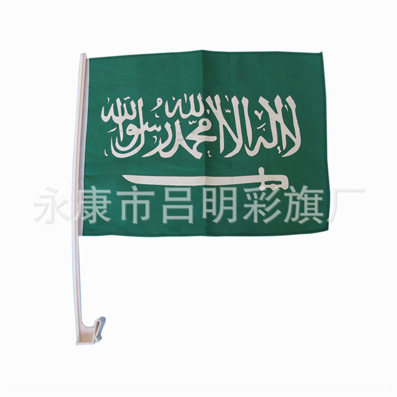 メーカーはサウジアラビアの車旗30*45cmのポリエステル生地の窓旗をカスタマイズすることができる