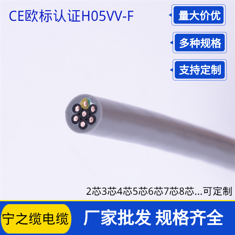 卸売ヨーロッパ電源コード H05VV-F 7*1.0 平方ワイヤー CE 認証ワイヤー輸出ヨーロッパワイヤー