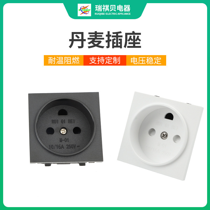 デンマークソケットデンマークカードソケットac電源ソケットデンマーク工業ソケット難燃pc材料50*50mm