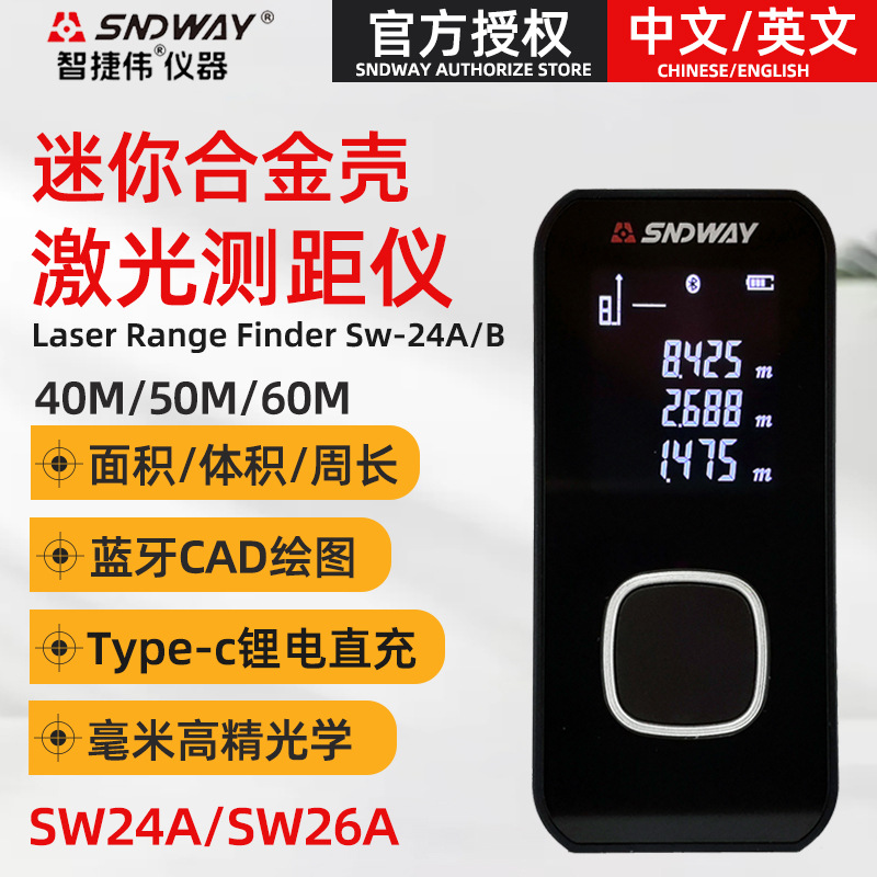 Shendawei ミニレーザー距離計 SW-24A/SW-26A ハンドヘルド赤外線電子定規 Bluetooth 測定ルーム