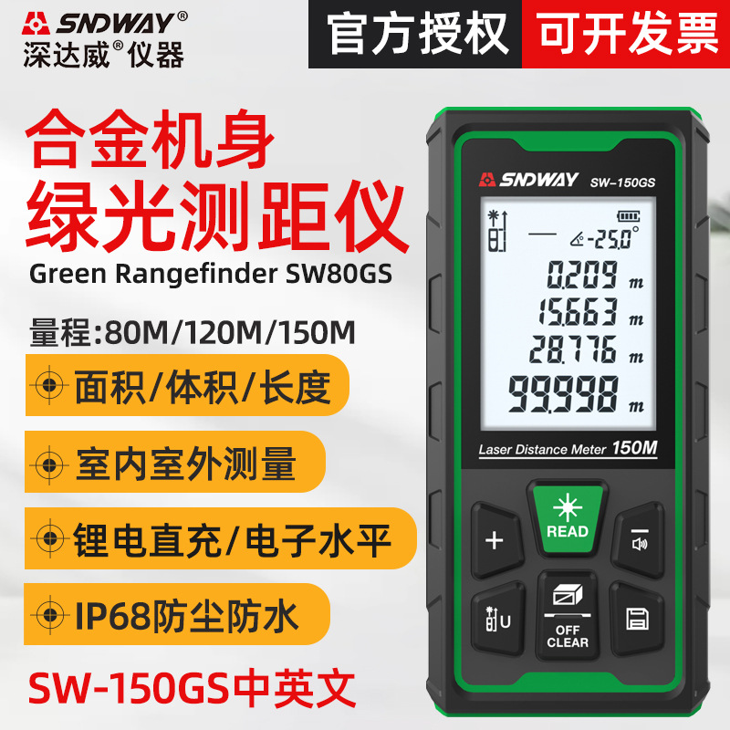 SNDWAY SW150GS 屋外レーザー距離計 グリーンライト距離計 屋外電子定規 英語