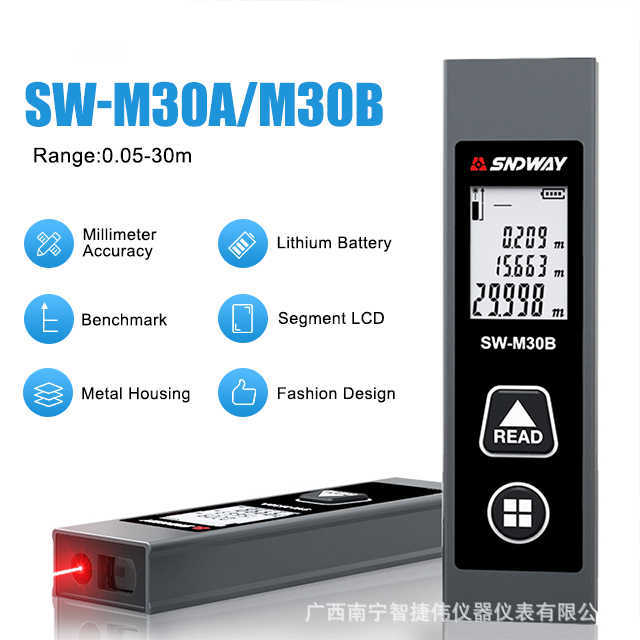 SNDWAY ミニレーザー距離計 30m 赤外線距離計 レーザー定規 合金電子定規 SW-M30B