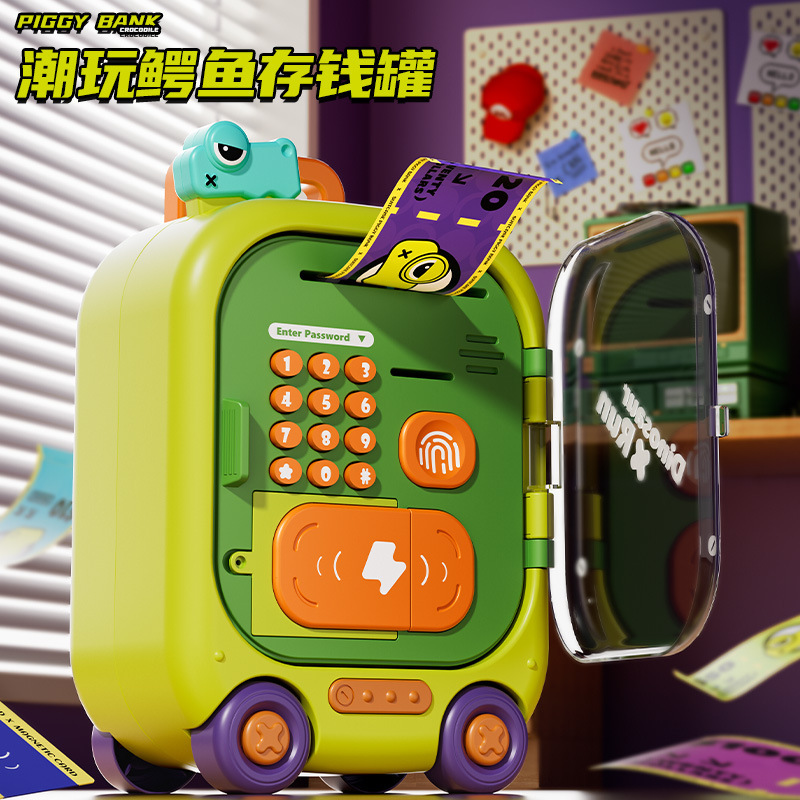 新しいインターネット有名人のワニ貯金箱多機能指紋パスワードロック新年子供のおもちゃギフトバッチ