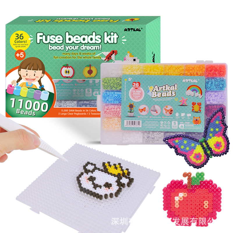 ゆうケン融合豆diyは豆の子供のプラスチックのおもちゃの5mmの豆の格子の箱の36色のセットをつづり合わせます。