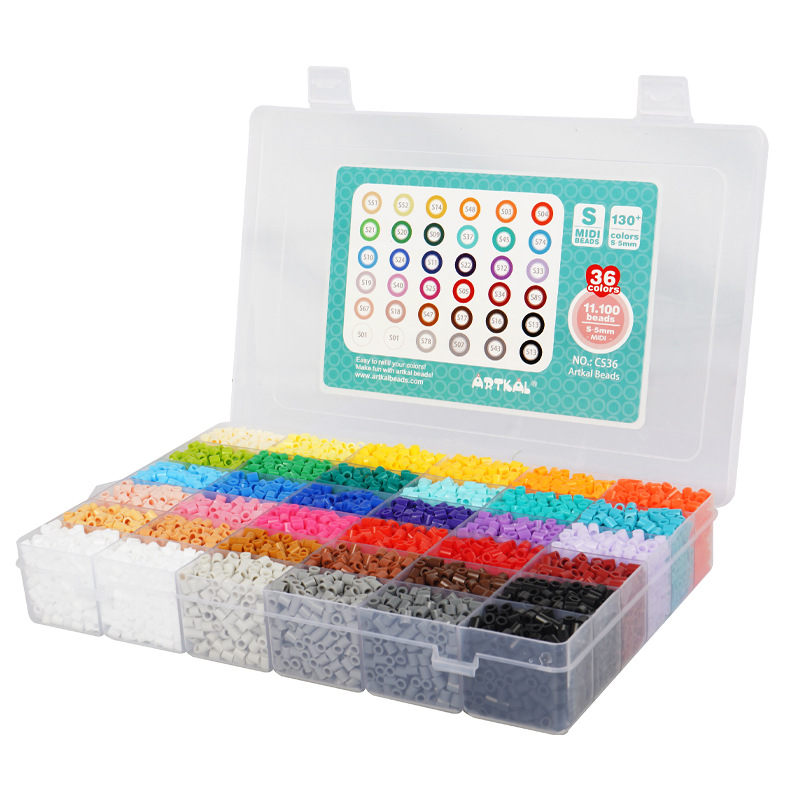 子供のおもちゃの益智の新しい奇抜なアイデアの新型の5mmのつづり合わせの豆の36色の箱のつづり合わせの豆は見本を持ちます。