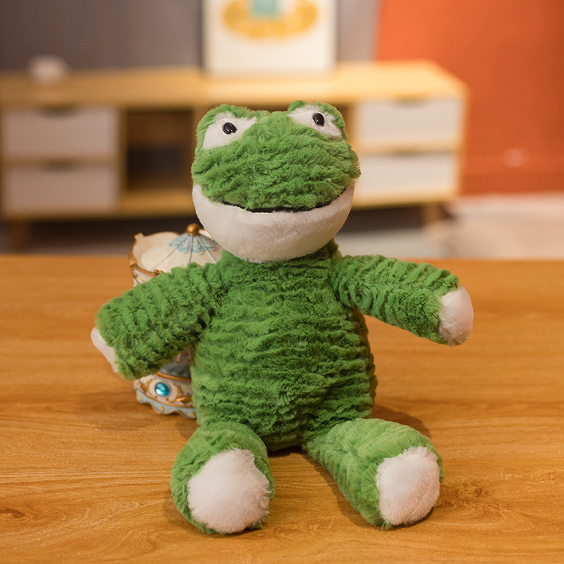 カエルのぬいぐるみは楽しい笑顔でカエルのぬいぐるみの子供たちが寝ている人形のプレゼント卸売りをなだめる