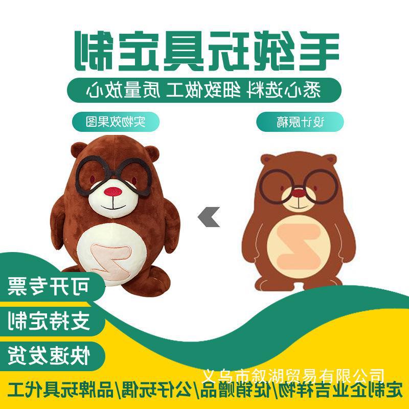 ぬいぐるみ企業のマスコットが人形のぬいぐるみのロゴを描いている