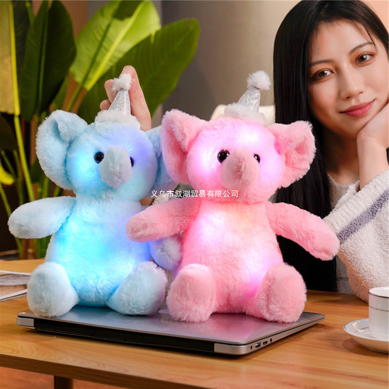 発光小象公仔クロスボーダー新商品七色のぬいぐるみ人形のデザインアイデア発光象赤ちゃん卸売り