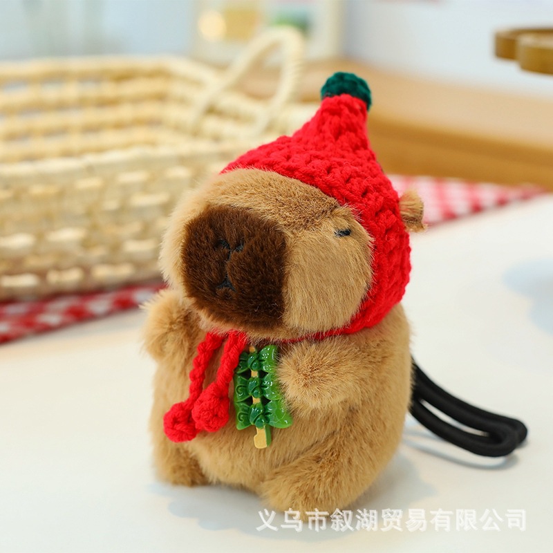 かわいいインターネット有名人カピバラ人形ニット帽子スカーフカピバラキーホルダーぬいぐるみ装飾ペンダント