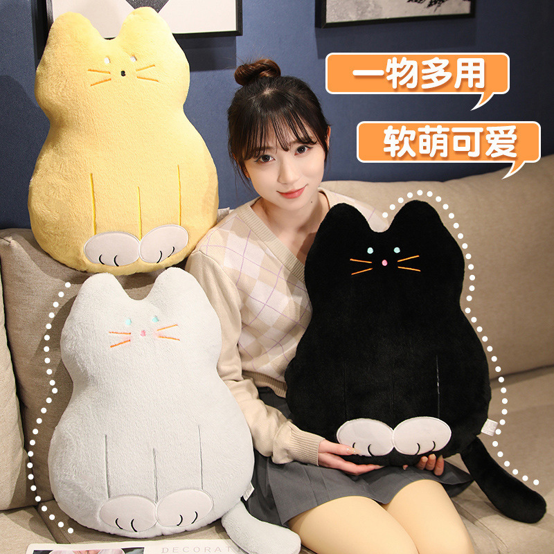 漫画のしゃがみ猫が枕を抱いてしゃがむ姿の猫の子供が寝て枕のシートのソファーのクッションのぬいぐるみを抱いて卸売りします。