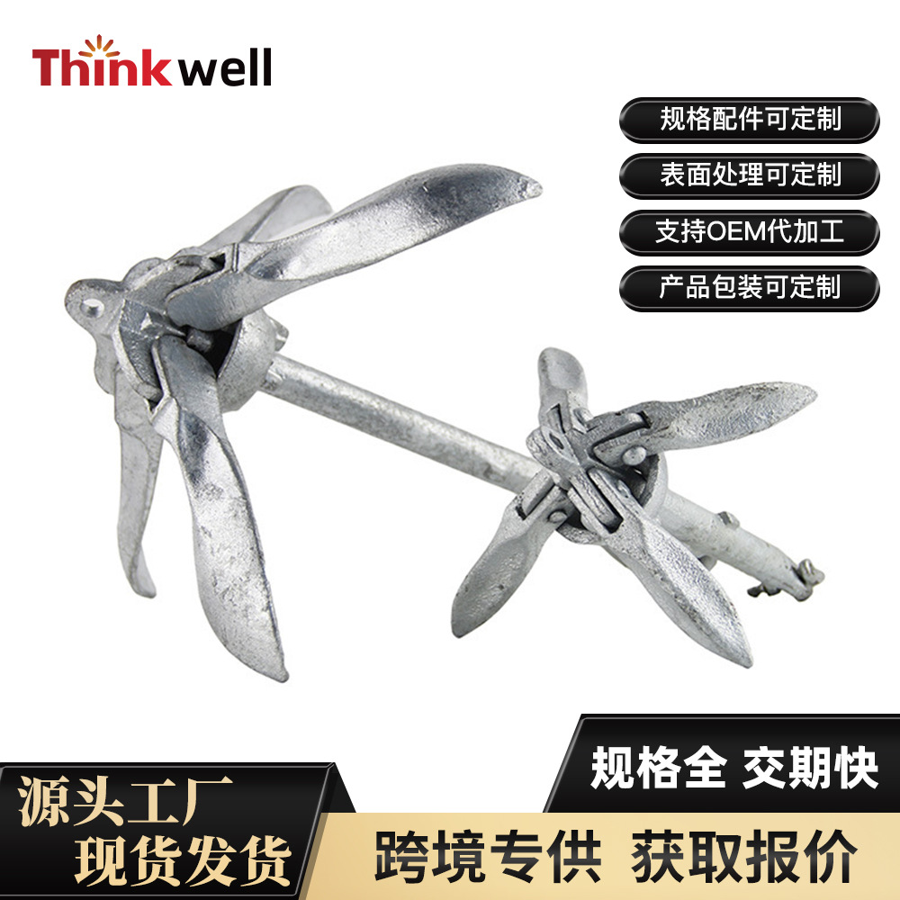 国境を越えたメーカーの馬鋼折り畳みアンカーカヌー船アンカー溶融亜鉛メッキ折り畳み傘アンカー1.5kg折り畳みアンカーセット
