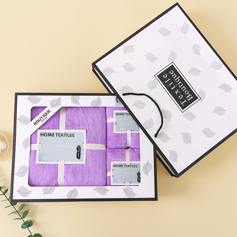 珊瑚绒タオル・バスタオル3点セットギフト包装、2点セット結婚祝いギフトボックス、1点卸売カラーボックス入り